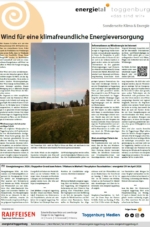 • Der Schwerpunkt der Sonderseite ist Windenergie. Wir zeigen auf, was aktuell bei den geplanten Projekte im Toggenburg läuft und welches Gewicht Windenergie in der Region hat.